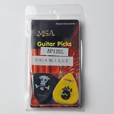 MSA AP-12EL 12 db-os, nylon alapanyagú pengető készlet 0.81/ 0.96/ 1.2/ 1.5 vastagságban, több színben, nyitható-zárható praktikus csomagolásban. Ajándéknak is kiváló!A pengetők tartósak, nehezen kopnak, rugalmasak.